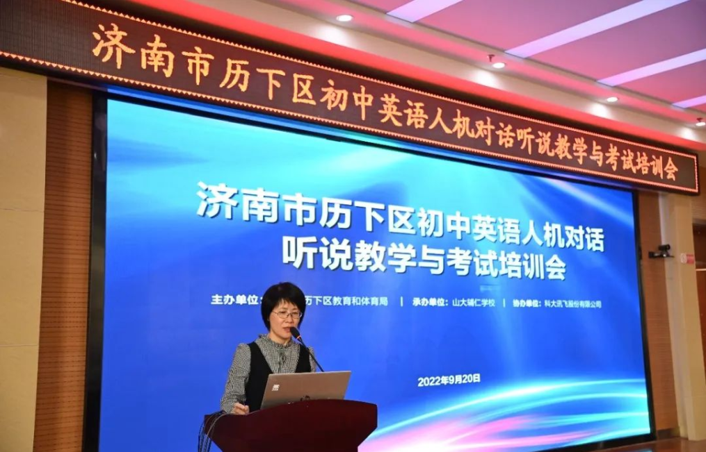 為滿足英語聽說機(jī)考教育改革需求,加快英語聽說教學(xué)模式轉(zhuǎn)變,提高英語聽說教學(xué)質(zhì)量,濟(jì)南市歷下區(qū)教體局在“歷下智慧教育+因材施教項目”中建設(shè)了英語聽說教考平臺、英語聽說教學(xué)系統(tǒng)及模擬考試系統(tǒng)。9月20日,濟(jì)南市歷下區(qū)初中英語人機(jī)對話聽說教學(xué)與考試培訓(xùn)在山大輔仁學(xué)校舉辦,進(jìn)一步探索英語聽說教學(xué)新途徑,全面發(fā)揮平臺及系統(tǒng)的應(yīng)用價值,保證各校英語聽說教學(xué)課程有序開展。
